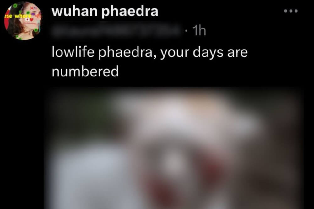 As revenge, some of the abusers used Phaedra’s photograph from her X account to create deepfake pornography of her – and one even used a photo of her as a child alongside dead cats and a sign that read “I’m coming for you Phaedra.”